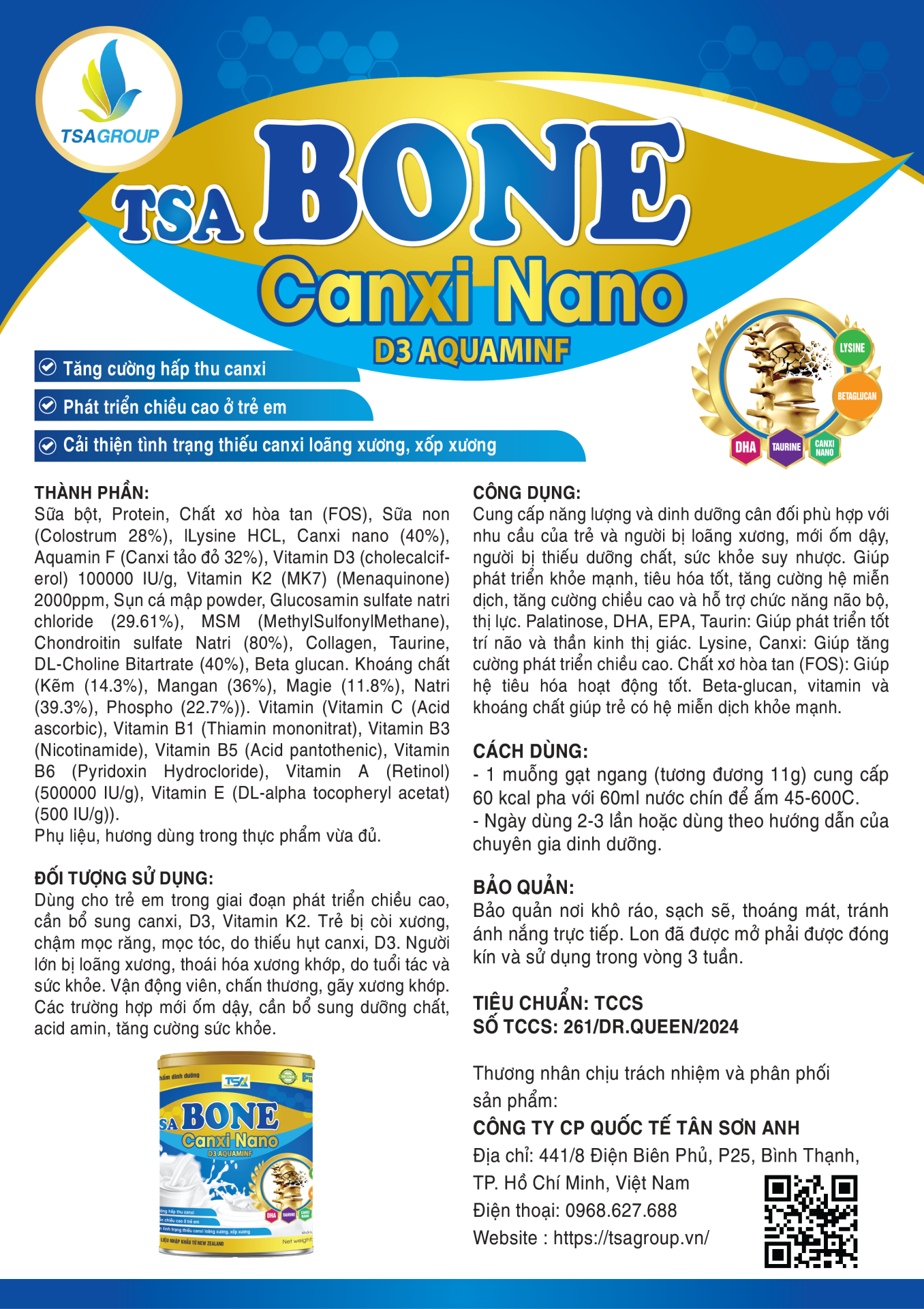 Tên hàng hóa: Thực phẩm bổ sung bone canxi nano d3 aquaminf